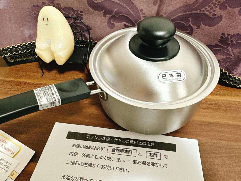 日本製の良い小鍋を見つけて買ったよ!3410円!藍ちゃんも買う?」