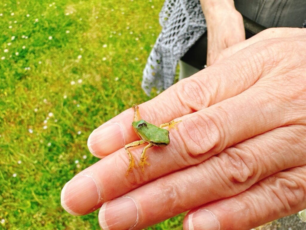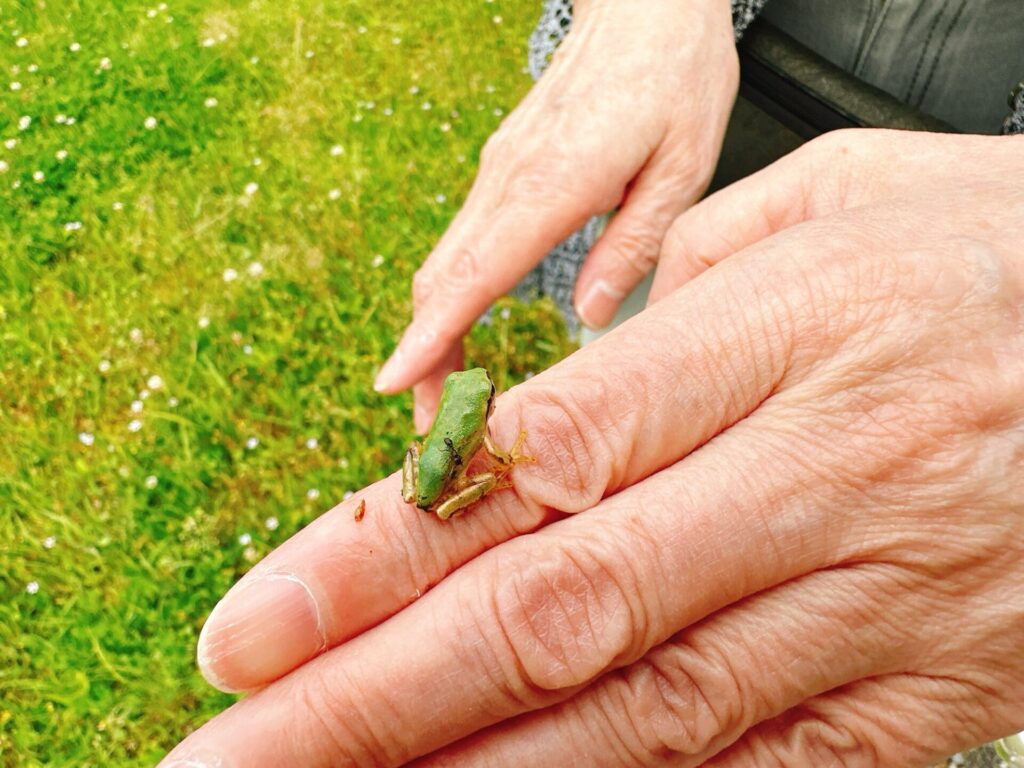 元幼稚園の先生である叔母が、なんの躊躇もなくカエルを捕まえてくれました。