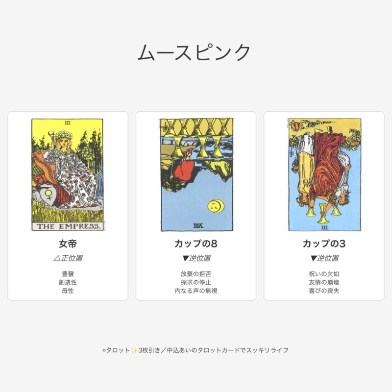 ムースピンクは「女帝」のみが正位置。