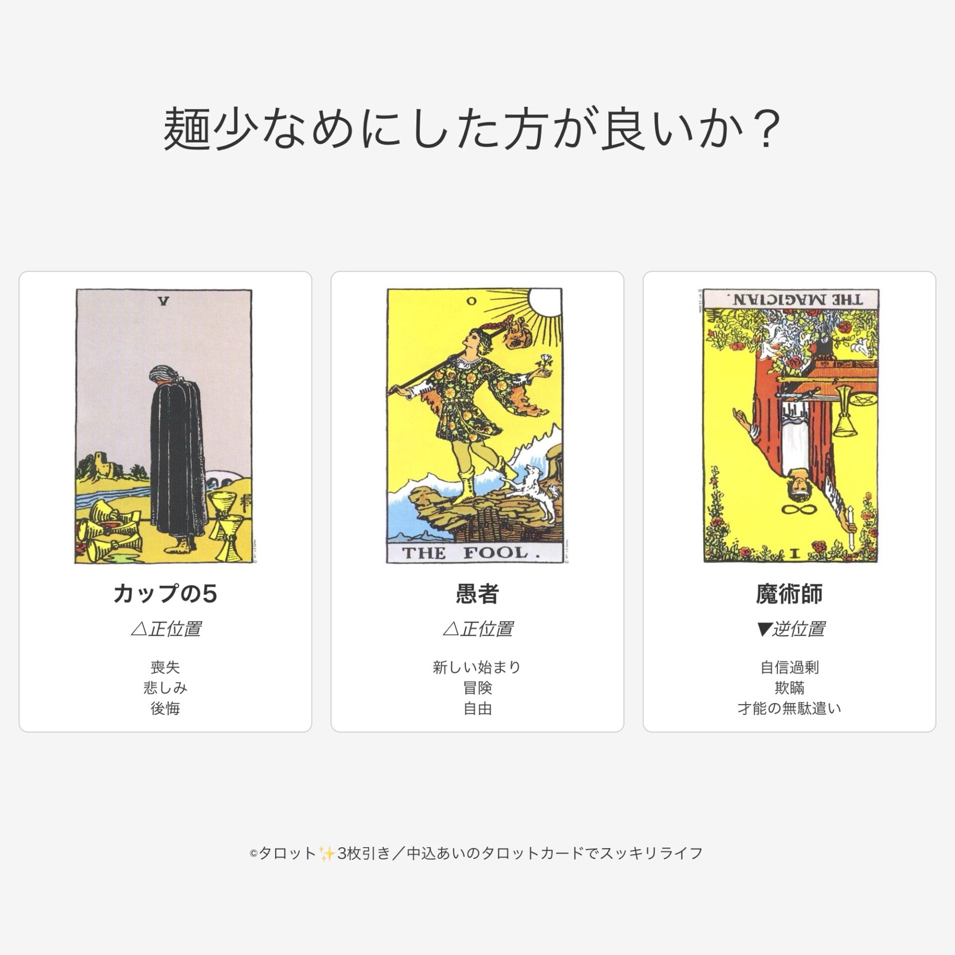 ん?あれ?意外と少なめにしろとタロットがゴリ押してくる感じがない。